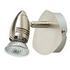 Dimensions du produit (L. 130 mm x H. 140 mm). Couleur chrome satiné. Matériel : métal. Tension 220-240V, 50 watts/tête max. IP20. 1 ampoule compatible (GU10) non fournie. À visser. Orientable. Câblage nécessaire. Raccords et fixations inclus. Nettoyage avec un chiffon doux.