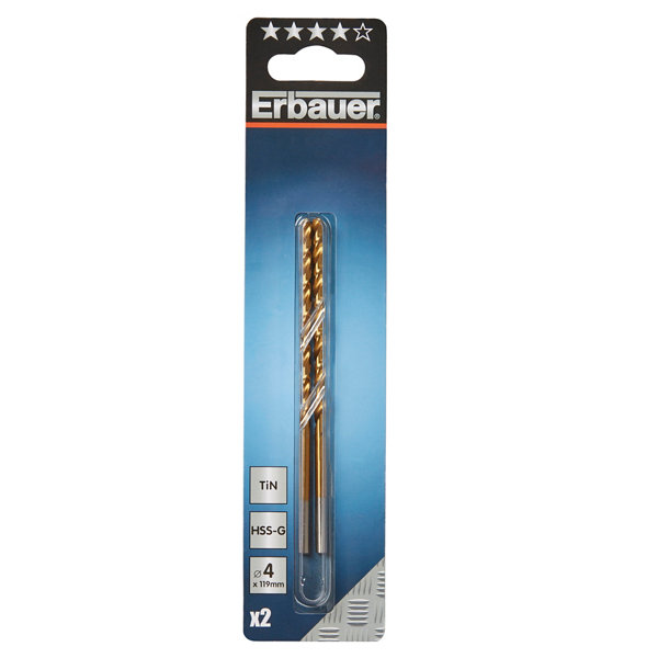 Lot de 2 forets au cobalt pour métal m35, Diam. 4 x 75 mm