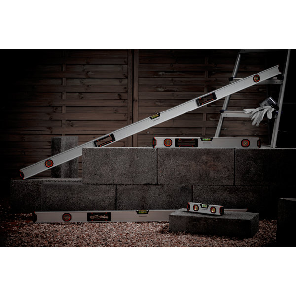 Son revêtement anodisé permet de conserver l'apparence du produit grâce à des propriétés antichocs et facilitant le nettoyage. Conception ergonomique pour une prise en main confortable sur les niveaux de grande longueur (600, 1 200 et 1 800 mm).