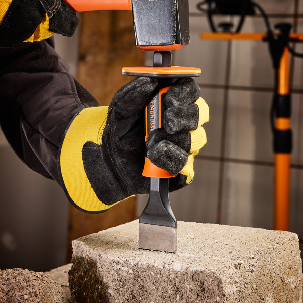 Ce ciseau à brique, dimensions 216x44mm, s'utilise idéalement avec un marteau en acier.