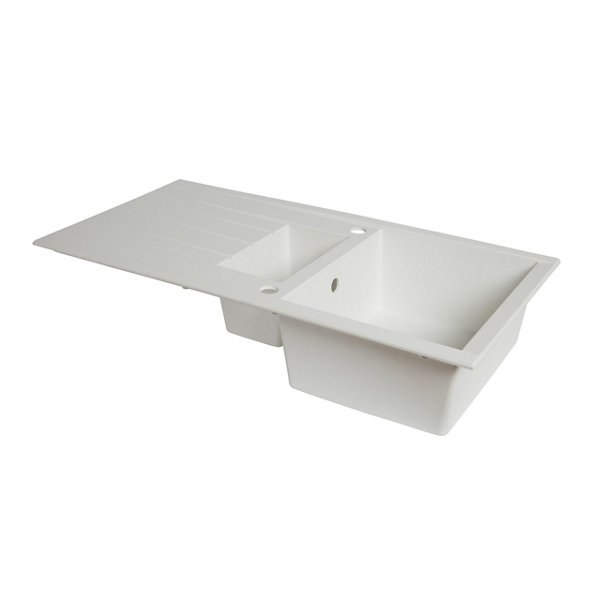 Evier céramique 1 bac encastré, blanc BELGARDE - 56,5x46x20 cm