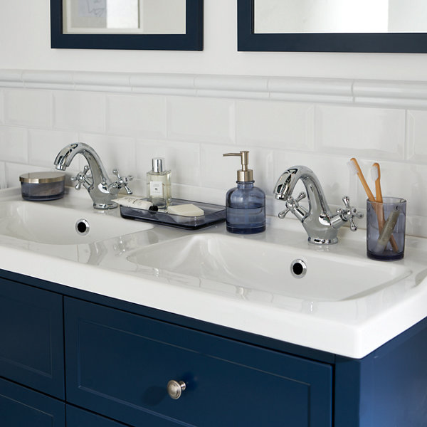 Plan double vasques à encastrer en céramique Nira L.120 x H.12 x P.45 cm