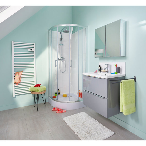 Porte de douche angle circulaire "Beloya" en verre transparent : H. 195 x l. 80 cm