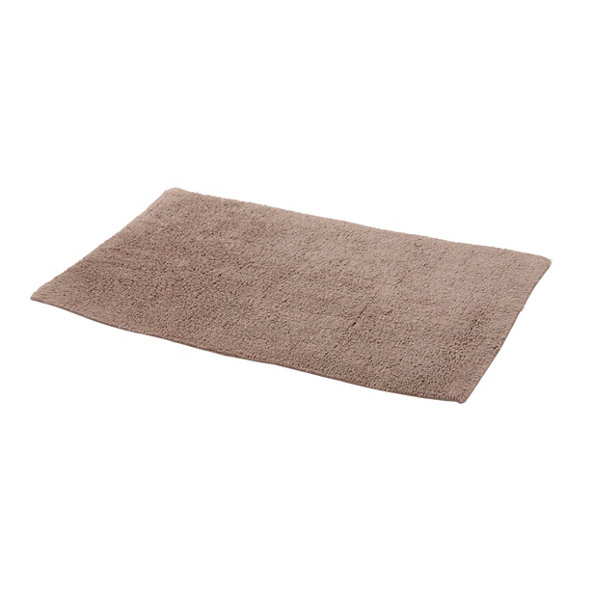 Tapis de salle de bain en coton taupe 50 x 80 cm. Antidérapant. Matériau au dos : latex pulvérisé. Lavage délicat uniquement (30 °C).