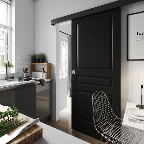 Porte coulissante "Industrielle" noir H. 204 cm x Larg. 83 cm