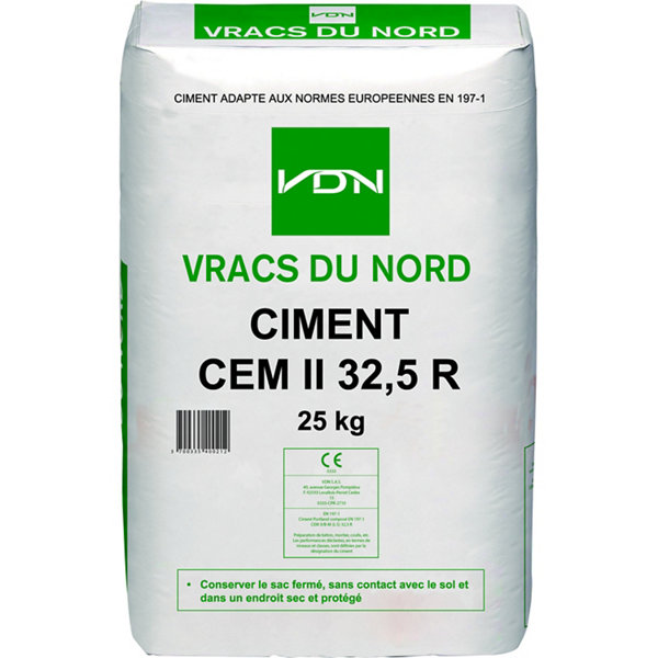 Ciment gris tous travaux courants NF, CEM II, 32,5 - sac de 25 kg