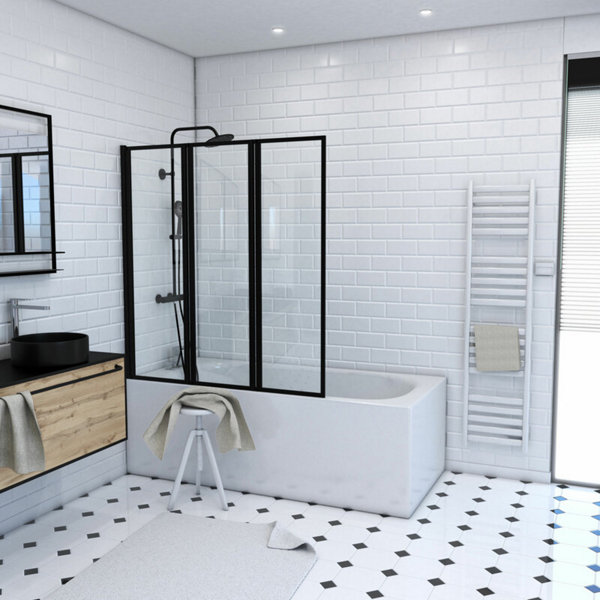 Pare-baignoire noir mat - L.80 X H.140 EP.6 MM