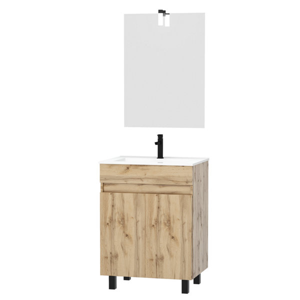 Ensemble meuble salle de bain EVASION finition mélamine effet bois - L.60 x P.46 x H.85 cm