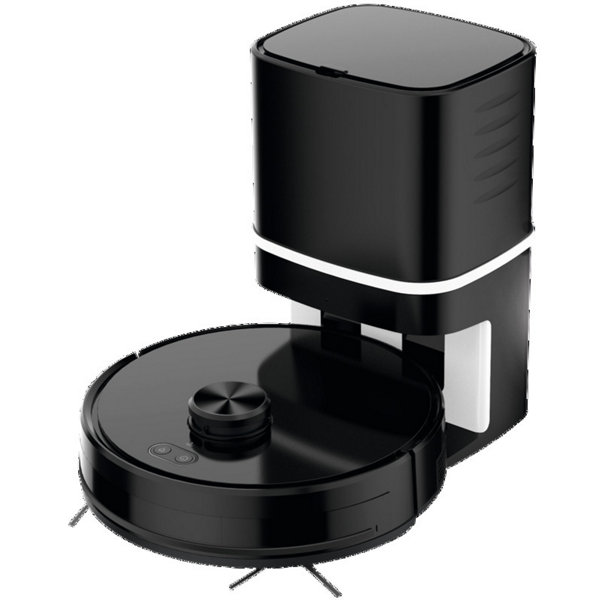 L'aspirateur/Laveur robot noir 36 W dispose d'un bac de récupération automatique sur la base de chargement.