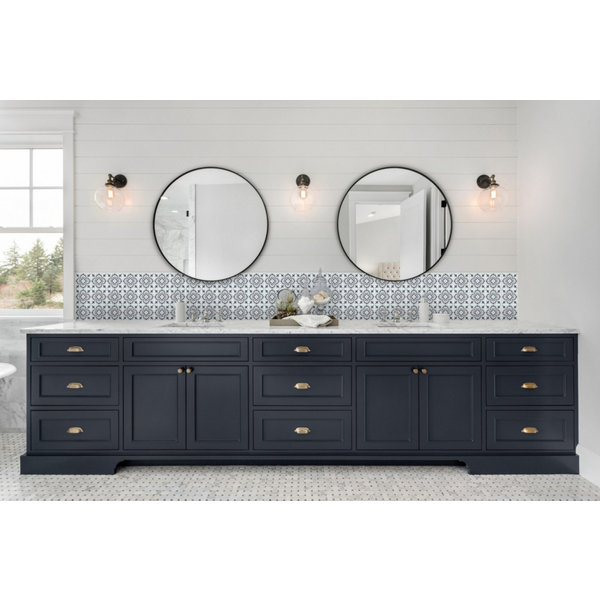 6 dalles murales PVC adhésives bleu et blanc effet carreaux de ciment "VINTAGE STYLE" 30X30 cm