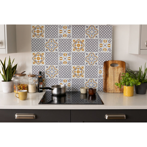 6 dalles murales PVC adhésives blanc/vert/gris effet carreaux de ciment "ALIA" 15X15 cm