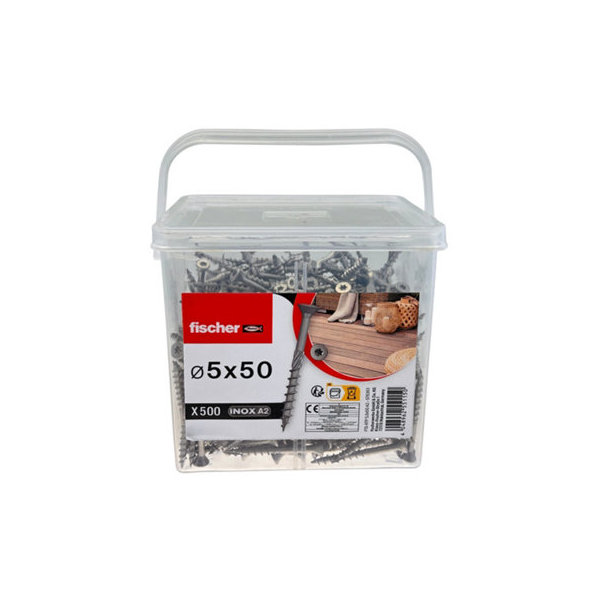Seau de 500 vis pour terrasse tête fraisée Torx 5 x 50 mm acier inoxydable A2