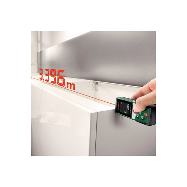 Découvrez le télémètre laser UniversalDistance 40C, l'outil idéal pour tous vos projets de bricolage et de construction. Compact et léger, il offre une précision exceptionnelle pour des mesures fiables jusqu’à 40 mètres. Facile à utiliser grâce à son affichage LCD et sa connectivité Bluetooth, il permet de calculer la distance, la zone et le volume en un clin d'œil. Conçu pour une utilisation intérieure, il dispose d’un arrêt automatique pour préserver la batterie. Son design vert et sa housse de transport en font un compagnon pratique et robuste.