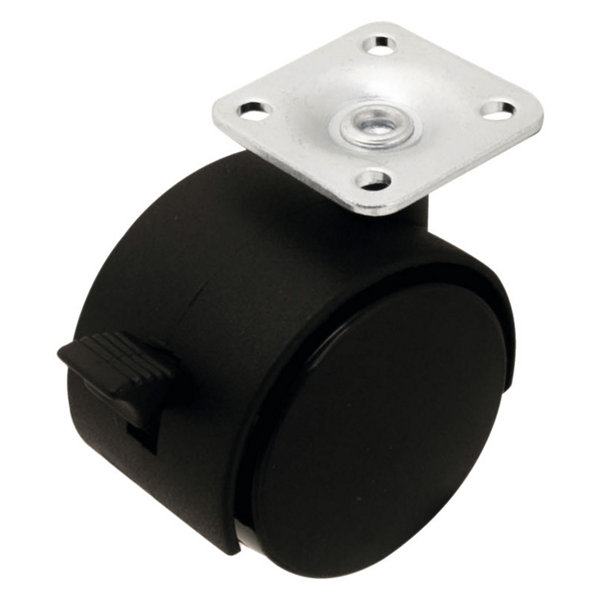 Roulette jumelée pivotante PP noir avec frein - Ø 5 cm - 30 kg