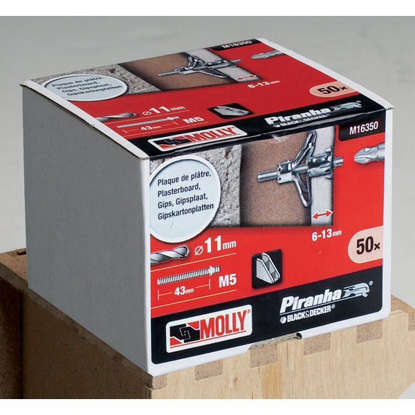 Cheville à expansion en acier M5 pour plaque de plâtre - Pack de 50