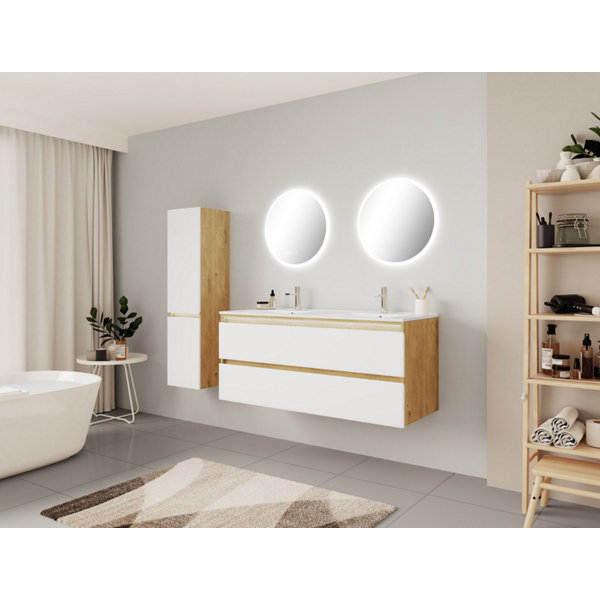 Bande LED sous la vasque. - Vasque : en céramique blanche 2 miroirs Ø 50 cm,