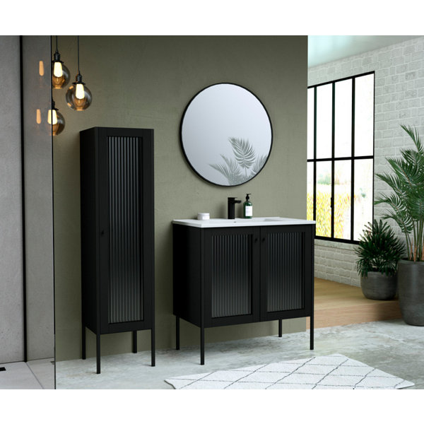 Ensemble meuble sous vasque + plan vasque + miroir "BOW" 80 cm noir