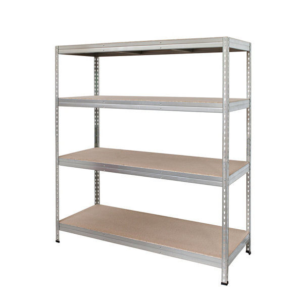 Étagère bois/métal gris charge lourde 4 tablettes - H. 185 x L. 220 x P. 60 cm