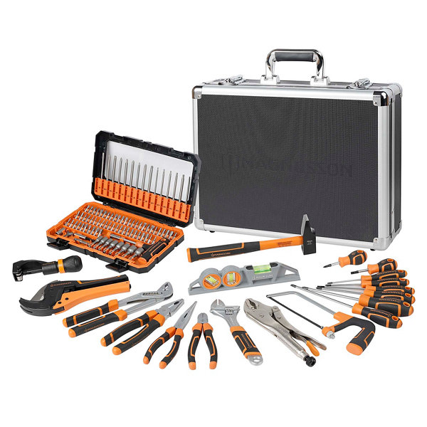 Coffret de 85 embouts taille 56 x 25 mm. Embouts fentes : 4 mm, 4.5 mm, 5 mm, 5.5 mm, 6 mm, 6.5 mm, 8 mm, Phillips : 2x PH1, 2x PH2, 2x PH3, Pozidriv : 2x PZ1, 2x PZ2, 2x PZ3, Torx : 2x T8, 2x T10, 2x T15, 2x T20, 2x T25, 2x T27, 2x T30, 2x T40, Torx : T8H, T10H, T15H, T20H, T25H, T27H, T30H, T40H (inviolable), Hexagonals : 3 mm, 4 mm, 5 mm, 6 mm, 8 mm, Carré : S1, S2, cannelure : M5, M6, M8, Hexagonals : 3 mm, 4 mm, 5 mm (inviolable) ; 15x 90 mm : fendue : 4 mm, 5,5 mm, 6,5 mm, Phillips : PH1, PH2, PH3, Pozidriv : PZ1, PZ2, PZ3, Torx : T10, T15, T20, T25, T30, hexagonals : 3 mm, 8 tourne-écrous : 6 mm, 7 mm, 8 mm, 9 mm, 10 mm, 11 mm, 12 mm, 13 mm, adaptateur d'embout, coupleur, porte-embout magnétique 60 mm, adaptateur de douille, tournevis en "Y" et poignée en T.