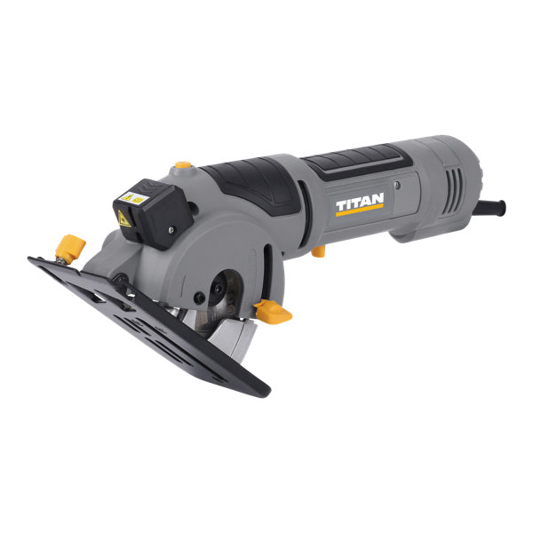 Cette scie Titan 500 W compacte et puissante permet une utilisation à 1 et 2 mains. Elle est très polyvalente, et réalise facilement des coupes droites dans le bois, les plaques de plâtre, le plastique et les carreaux.Le laser intégré assure une précision et une coupe plus précise.