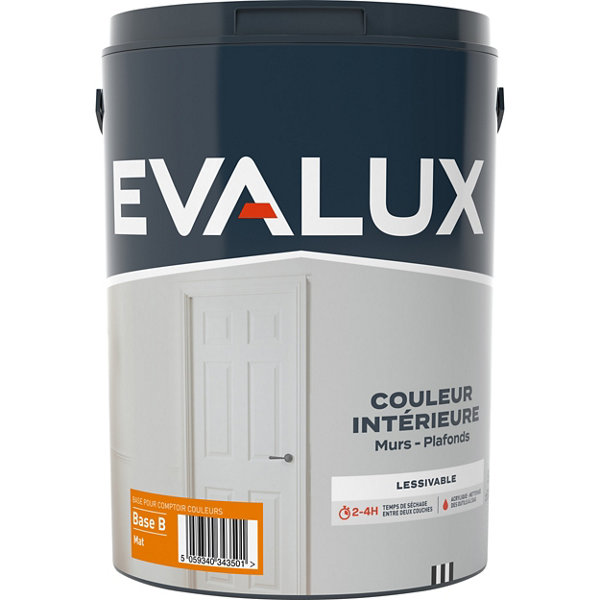 Découvrez la peinture MURS BASE B 5L MAT d'Evalux, idéale pour vos travaux de décoration intérieure. Sa formule à base d’émulsion offre une couverture efficace d’environ 50 m² par couche, avec un rendu mat élégant. Facile à appliquer au pinceau ou au rouleau, elle sèche rapidement en 2 à 4 heures, permettant la pose de deux couches pour un résultat durable. Sa composition respecte l’environnement avec une classe d’émissions de COV A+, garantissant un air intérieur plus sain. Conçue pour les murs et plafonds, cette peinture résistante au jaunissement est parfaite pour un intérieur moderne et soigné.