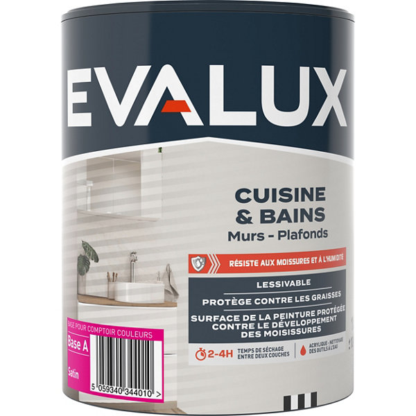 Peinture cuisine et bains Base A satin 2,5 L