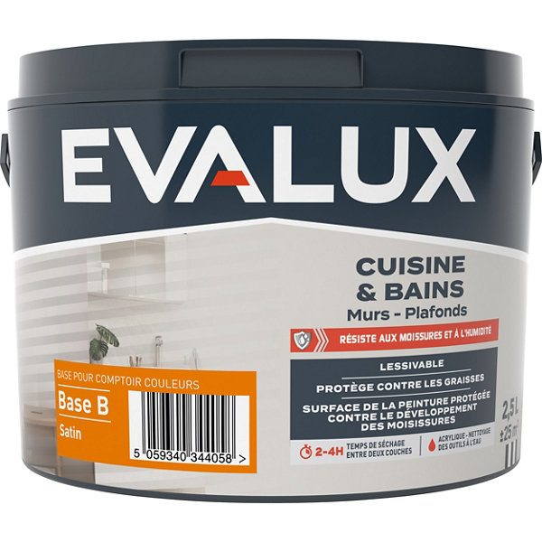 Peinture cuisine et bains Base A satin 2,5 L
