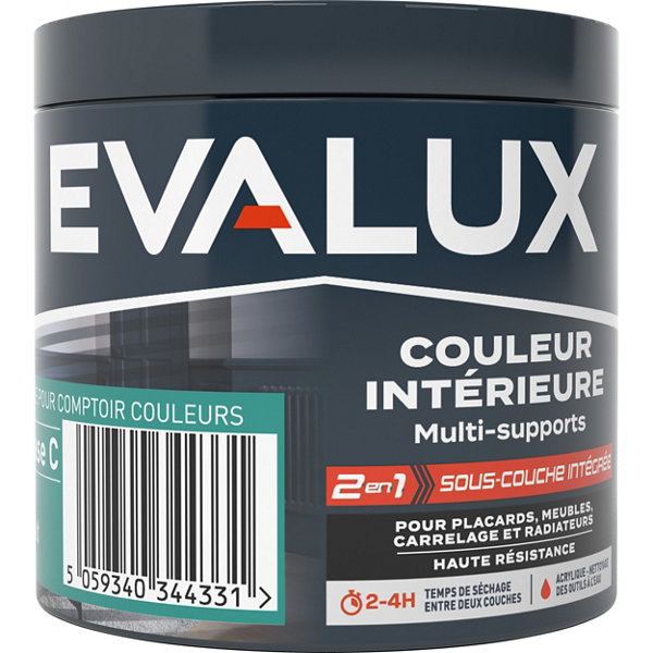 Le MULTI SUPPORTS BASE C 0L236 MAT EVALUX est une peinture en émulsion conçue pour une utilisation intérieure sur diverses surfaces telles que le bois et le métal. Son fini mat apporte une finition élégante et moderne à vos projets de rénovation ou de décoration. Facile à appliquer au pinceau ou au rouleau, elle couvre environ 10 m² avec deux couches, en un temps de séchage de 2 à 4 heures entre chaque couche. Sa formule résistante au jaunissement garantit une tenue durable dans le temps. Cette peinture est lavable, résistante à la moisissure et adaptée pour un usage intérieur.