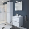 Le Rangement mural blanc Idalie L. 40 x H. 90 x P. 36 cm L'armoire de salle de bains Idalie est équipé d'un mécanisme de fermeture silencieuse et amortie.