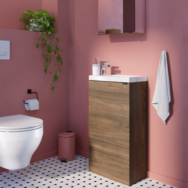 Lave main à suspendre effet noyer Idalie - L. 44 x H. 55 x P. 23 cm