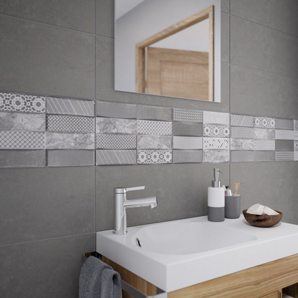 Décor faience aspect béton coloris gris et blanc 20X50 cm "DIJON"