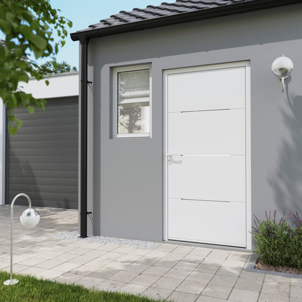 Porte d'entrée aluminium blanc "Mahe" H. 215 x l. 90 droite