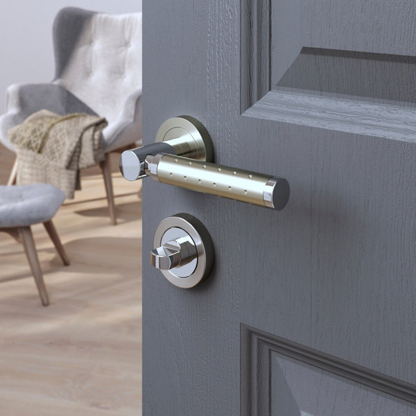 Rosace "Oric" avec serrure à condamnation effect chromé à double finition Cooke & Lewis. Elle est à associer à des poignées de porte sur rosace de même finition et convient à une épaisseur de porte de 35 à 45 mm.