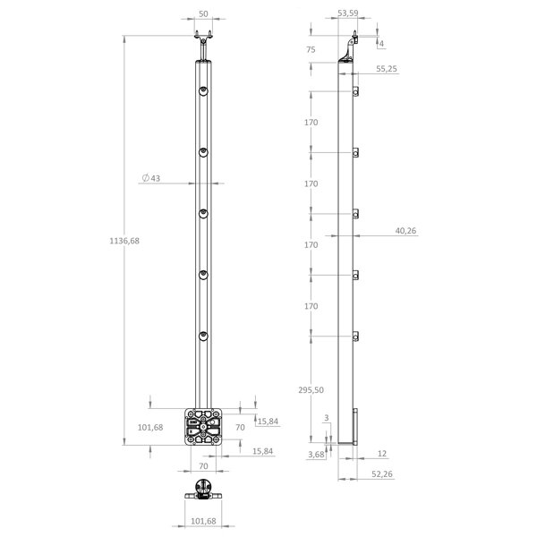 Poteau aluminium diam. 40 mm - fixation à plat "lumio"