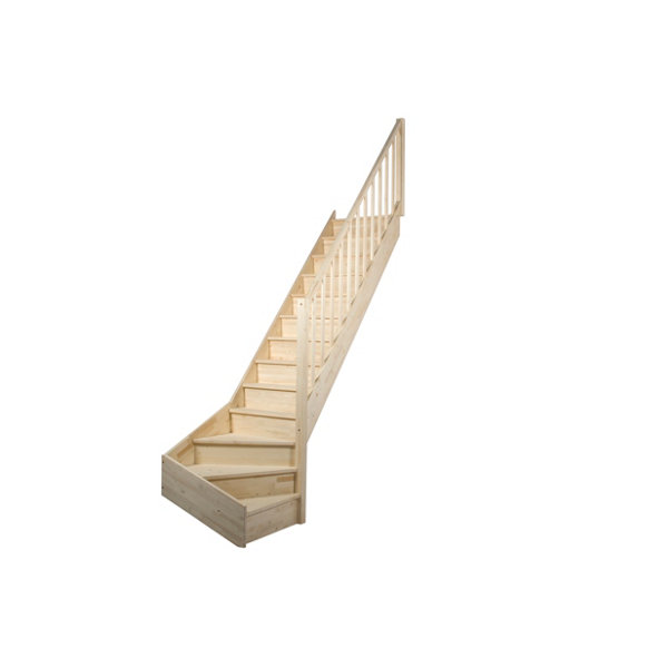 Escalier 1/4 tournant gauche prémonté sapin + rampe "Elma"