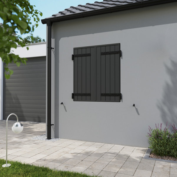 Volet battant manuel 2 panneaux aluminium gris 115 x 100 cm