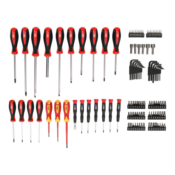 Kit 31 tournevis + 8 clés Allen + 60 embouts sur support plastique