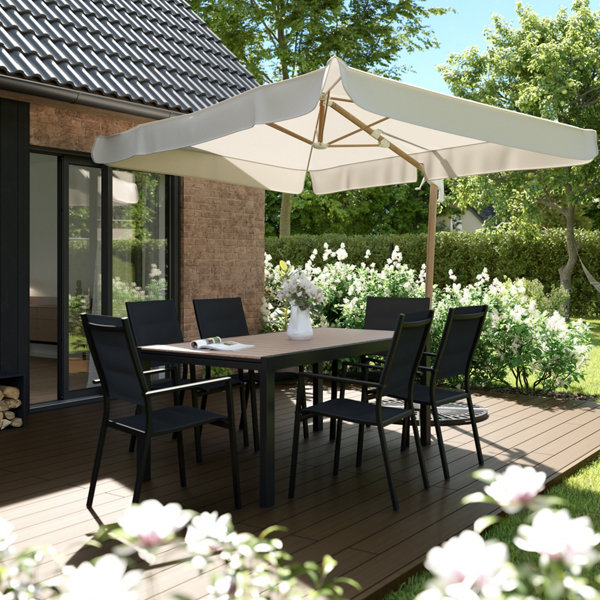 Table en aluminium et plateau imitation bois "AMELA" - L. 161,5 x l. 100 x H. 75,5 cm.