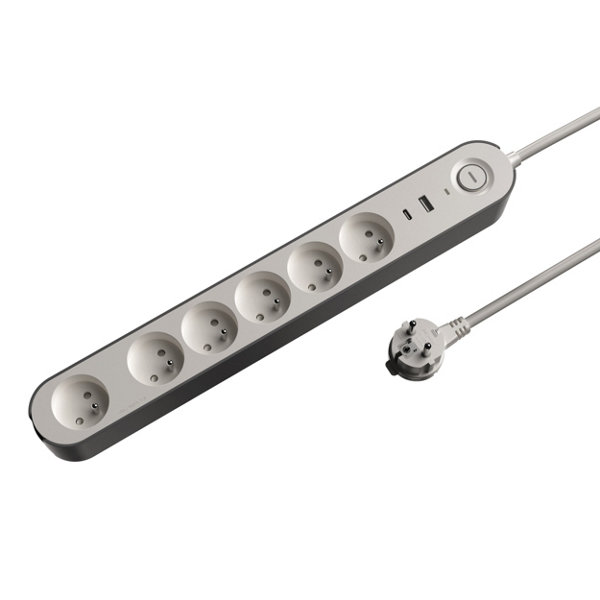 Bloc 6 prises 1,5 m gris et noir USB A + C