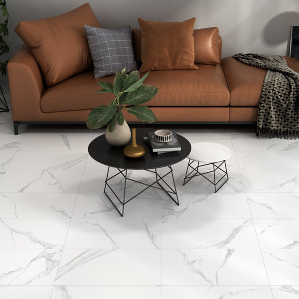 Carrelage de sol intérieur en grès cérame émaillé "CARRARA" blanc - 60 X 60 cm