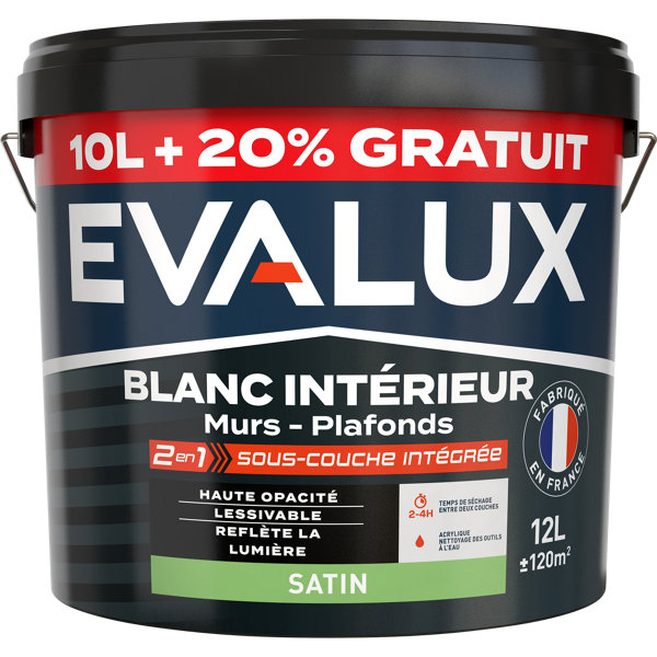 Peinture Blanche intérieure 2en1 sous couche intégrée Satin 10 L