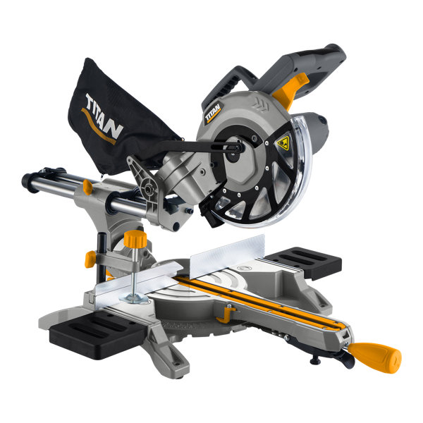 La scie à onglet radiale Titan 210mm avec lame TCT à 48 dents fonctionne à une vitesse de 5000tr/min pour traiter de grandes quantités de matériaux à un rythme élevé. Scie réglable avec 5 butées préréglées à gauche et un biseau jusqu'à 45° pour choisir l'angle le plus adapté à la tâche. Fournie avec un sac à poussière, des bras d'extension et une clé mâle pour les réglages.