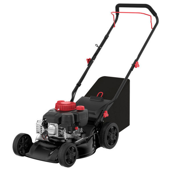 Moteur 4 temps. Cylindrée : 132 cm3. Largeur de coupe : 41 cm. Hauteur de coupe réglable sur 7 positions : 2,5 à 7,5 cm. Fonction ramassage. Bac de ramassage : 45 L. Carter en acier avec raccord de nettoyage. Idéale pour les terrains jusqu’à 1000m².