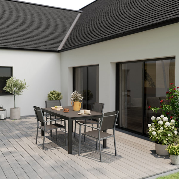 Table de jardin extensible aluminium et plateau en verre trempé gris anthracite - 4 à 10 personnes
