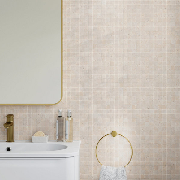 Mosaïque Travertin en pierre naturelle beige - l. 30,5 x L. 30,5 cm