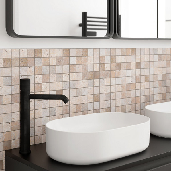 Mosaïque Travertin en pierre naturelle beige - l. 30,5 x L. 30,5 cm