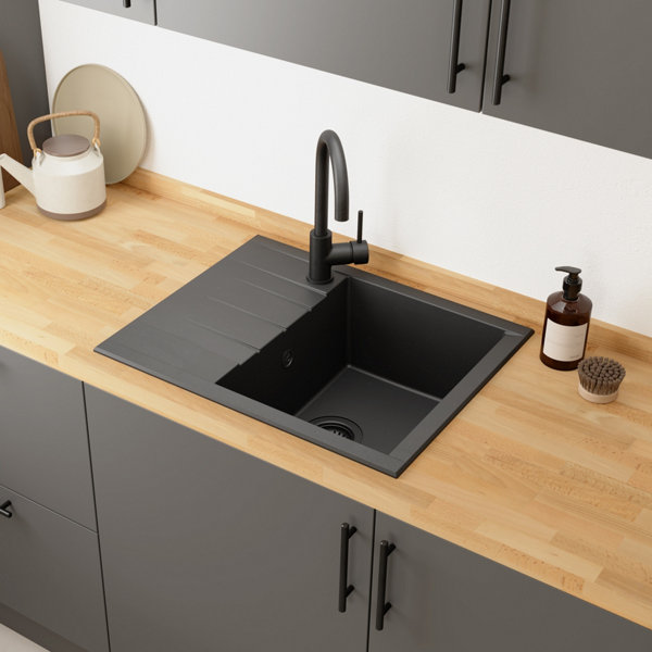 Evier résine, rectangulaire 1,5 bacs noir encastré ISING BOWL - 100x50x21 cm