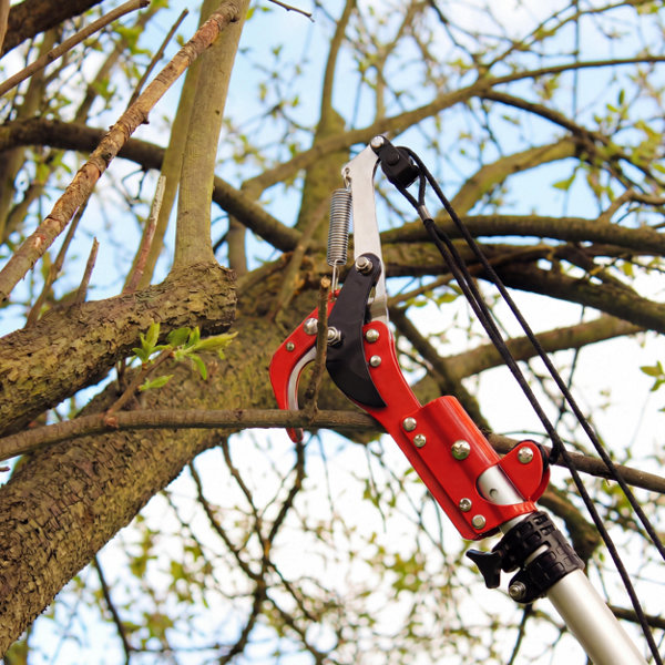 Idéal pour élaguer et tailler des branches avec précision. Atteignez facilement les branches hautes grâce à son manche télescopique. Lames en acier à haute teneur en carbone pour une coupe nette et efficace. Revêtement antifriction garantissant une coupe lisse et précise. Fourni avec une scie à branches pour les coupes plus larges.