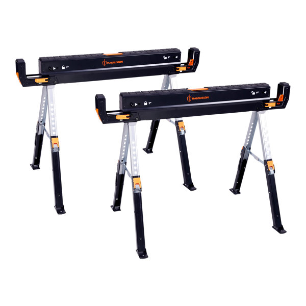 Ce chevalet de sciage Magnusson allie robustesse et flexibilité pour tous vos travaux de bricolage. Son design pliable avec poignée intégrée facilite le transport et le rangement. La hauteur de travail s'ajuste précisément pour un confort optimal. Ses pieds indépendamment réglables assurent une stabilité parfaite même sur des surfaces irrégulières. Avec une capacité de charge impressionnante, il supporte aisément de lourdes charges pour tous vos projets.