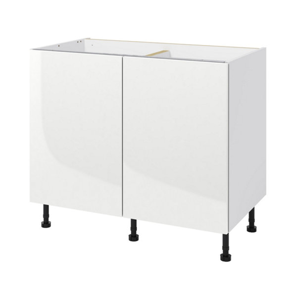 Meuble bas "Dorice" blanc brillant l.100 x h.72 x p.57 cm 2 portes